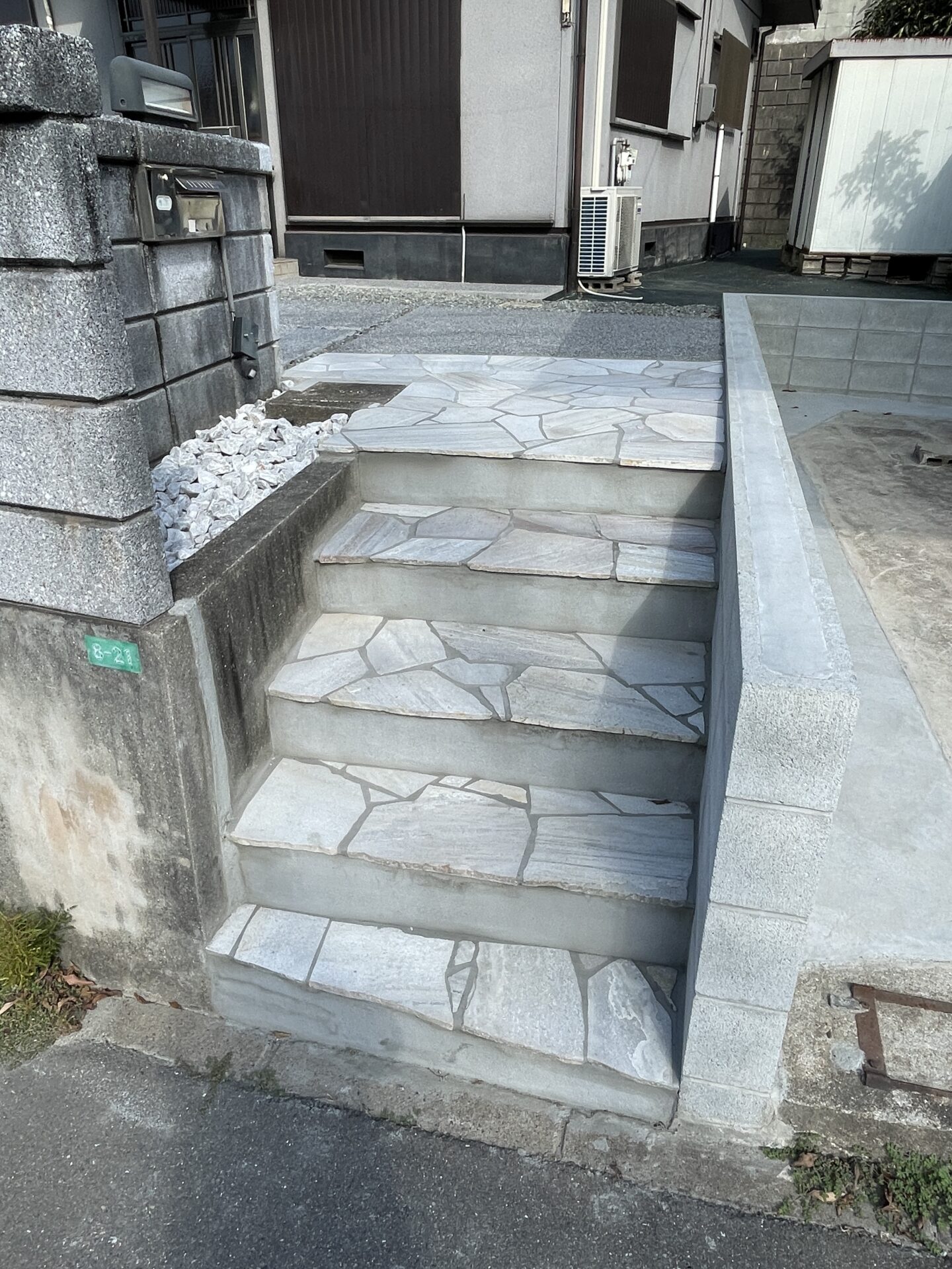 古い階段を一新して生まれ変わったリフォーム外構 Comment 駐車場を少し広げて一方の門袖を撤去し、古くなった階段を一新しました。 階段を上がった先の庭スペースは以前は防草シートのみだったのですが、今回アプローチ部分を洗い出しにし、歩きやすくしました。 施工事例一覧に戻る